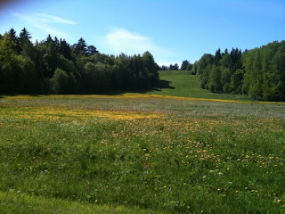 Idag så sov jag så riktigt länge, runt halv tolv taget gick jag ut i det underbara vädret för att göra min lååånga promenix, ca 10 km på 1 timme och 35 minuter. Jag var helt slut efteråt. Det är alldeles för varmt på den tiden för att gå så länge, men det var en nödlösning idag. Det är så riktigt härligt att vara ute på den tiden. Jag träffar inte en enda människa på hela vägen, man skulle kunna tro att klockan var 5 på morgonen eller något. En massa djur träffar man på också ( i förra veckan så såg jag en svart låååång orm och en liten brun groda, igår och idag så såg jag ett rådjur)..jag försökte fota rådjuret med min iPhone, men det var för långt bort och jag vet inte hur man zoomar om man ens kan det. Men en fin bild blev det ändå.